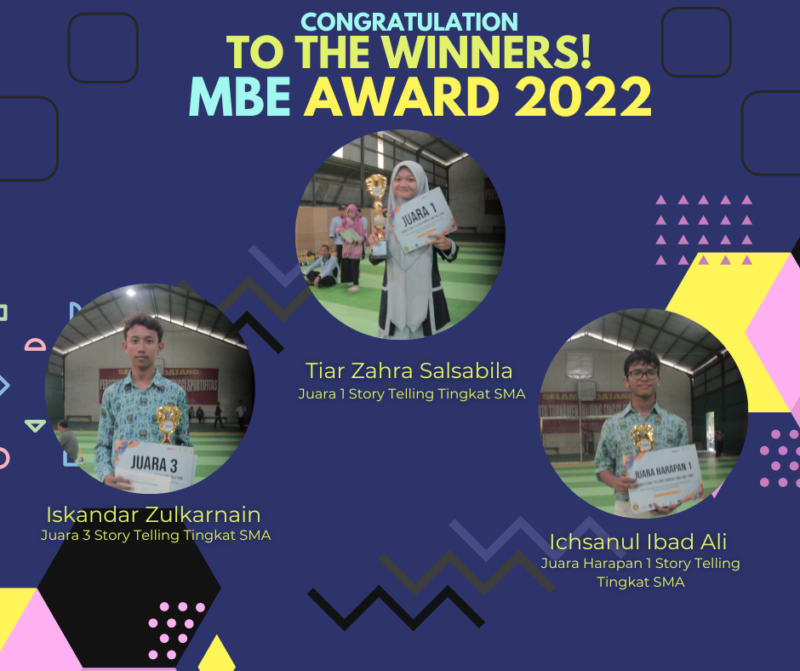 Selamat Kepada Iskandar Zulkarnain yang mendapatkan Juara 3 Lomba Story Telling di MBE Award Tingkat SMA – SMA MBS Al Amin Bojonegoro & Selamat Kepada Ichsanul Ibad Ali yang mendapatkan Harapan 1 Lomba Story Telling di MBE Award Tingkat SMA – SMA MBS Al Amin Bojonegoro