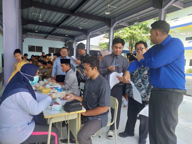 Suasana kegiatan berlangsung ramai dan penuh antusiasme. Meski demikian, tidak sedikit siswa yang tampak gugup menghadapi jarum suntik atau takut melihat darah. Beberapa di antaranya bahkan perlu dibujuk terlebih dahulu sebelum akhirnya bersedia menjalani pemeriksaan. “Alhamdulillah, semua siswa akhirnya berhasil mengikuti rangkaian pemeriksaan tanpa terkecuali,” ujar Bu Lelly sebagai penanggungjawab lapangan yang turut mendampingi siswa selama kegiatan.